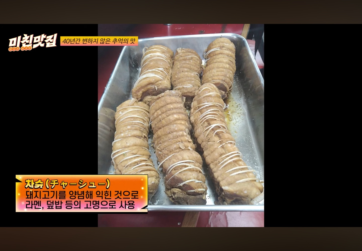 이 차슈를 빨갛게 물들여서 빨갛게 보인다고 하네요!