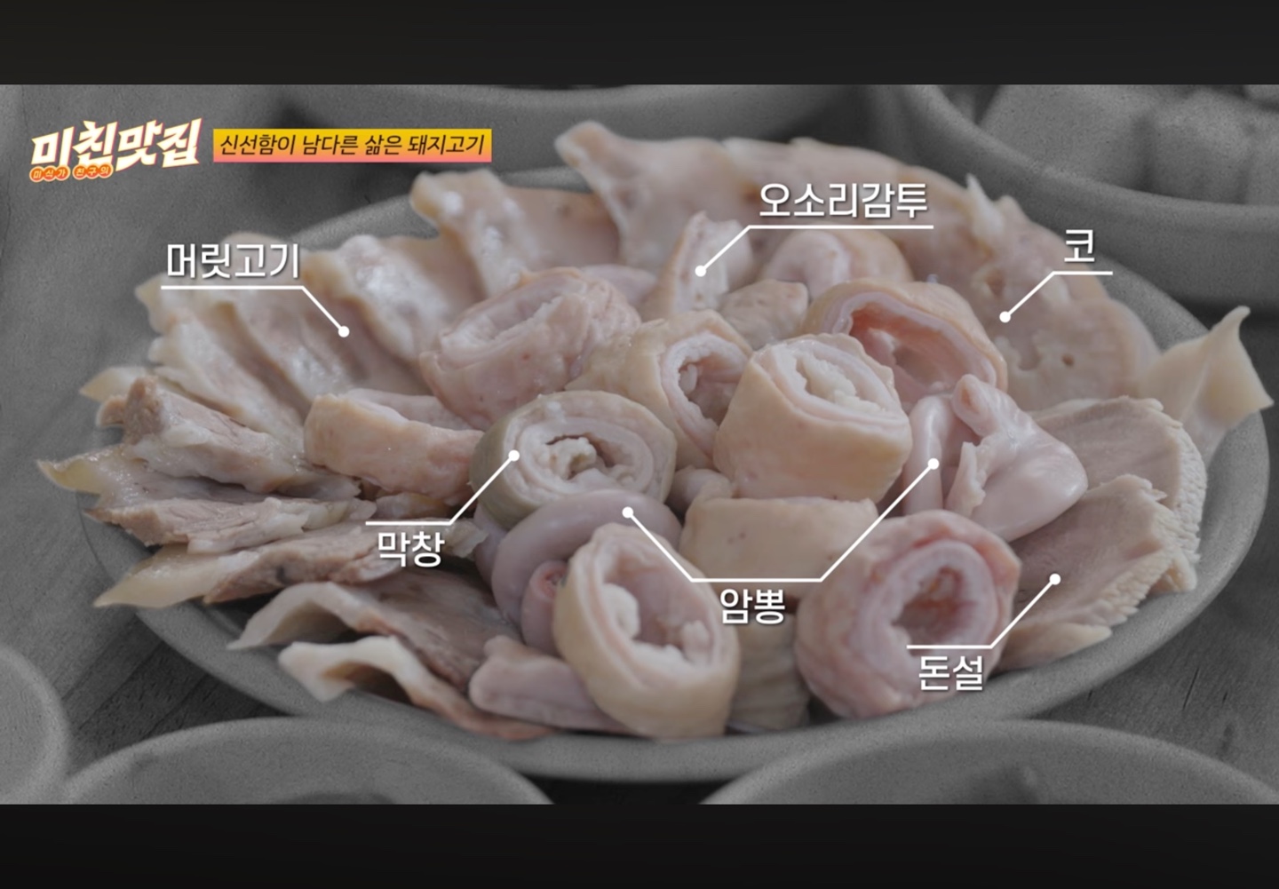 머릿고기, 돈설(돼지혀), 오소리감투(돼지의 위 부분),