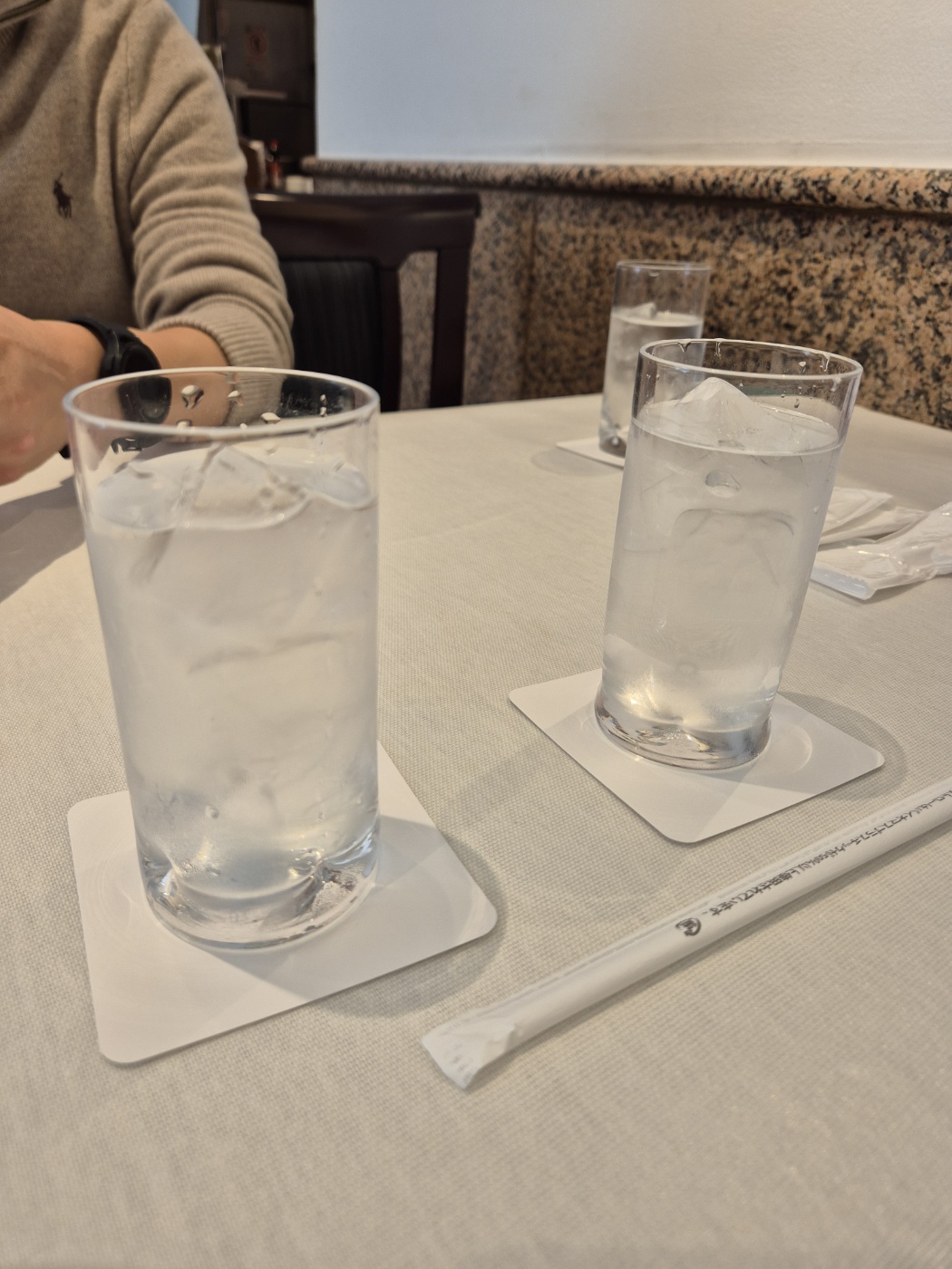 종이코스터를 한장 한장 깔아주며 물을 따라주시기까지~