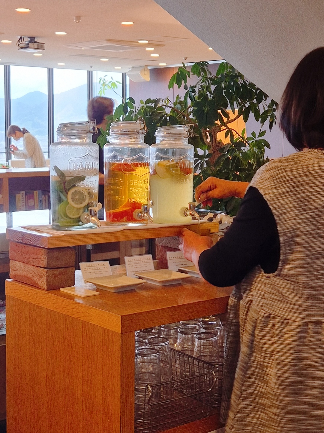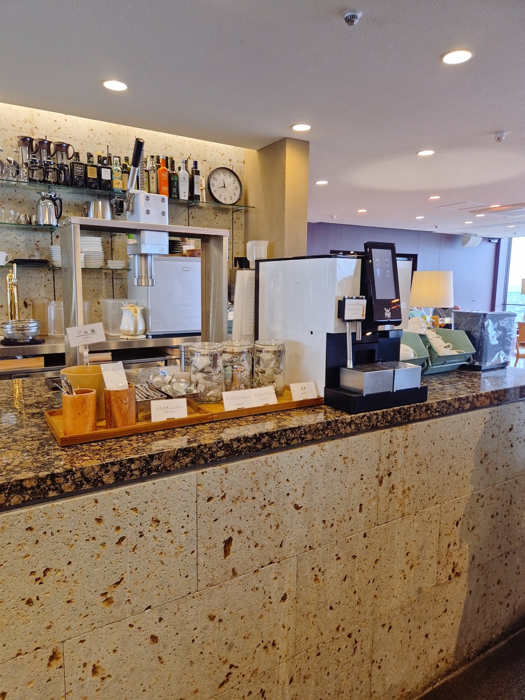 커피와 차를 이용 하실 수 있구요.! 뜨거운 물은 커피 머신에서 화살표 표시된 부분을 이용하시면 됩니다.