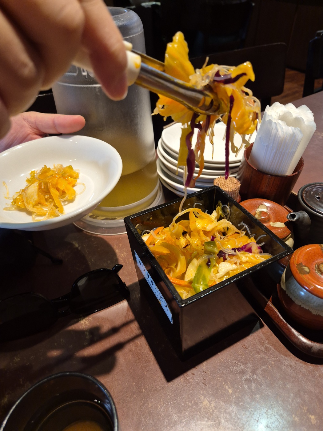 아삭한 야채들과 새콤달콤한 상큼한 소스에 하루사메가 섞여있어서