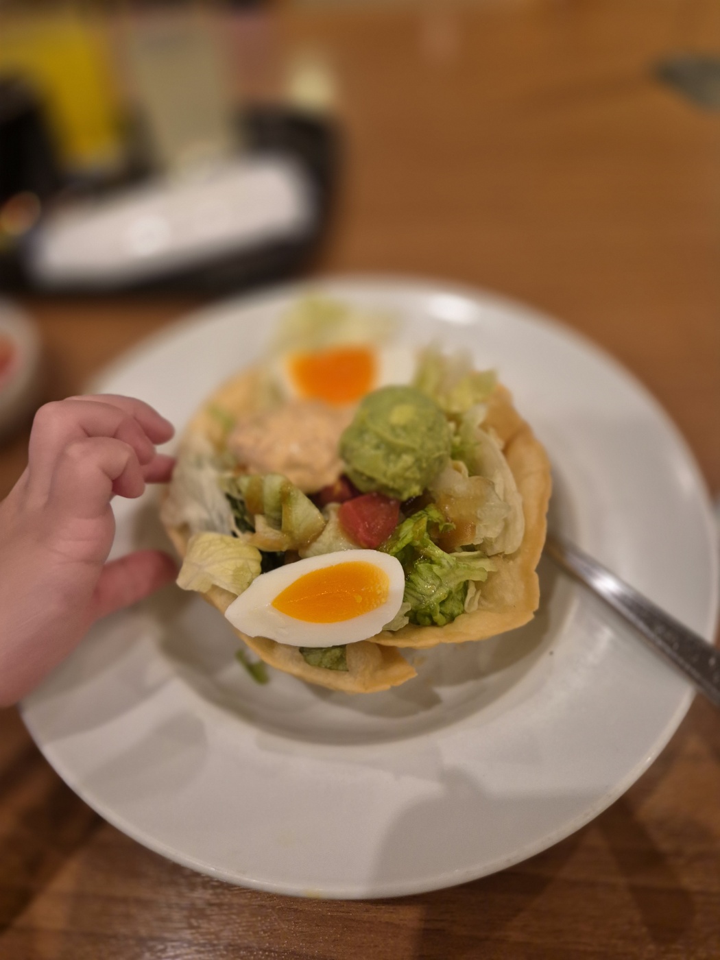 제가 시킨 샐러드인데 아이가 바삭한 부분만 떼먹었네요 ㅎㅎ